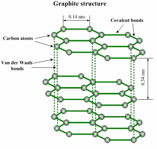 键的键长更短,键能更大 - 石墨质软,原因是石墨层与层间靠范德华力维系,可以发生层间的相对滑动
