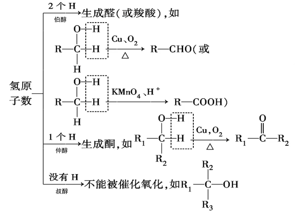 相连的碳必须有 ,才能发生催化氧化反应 氧化反应:有机物分子中失去氢原子或加入氧原子的反应(去